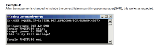 Now I was using the amqsput sample application that comes with WMQ ( I was using version 7.5 but it's also there with version 8 ), as follows: -